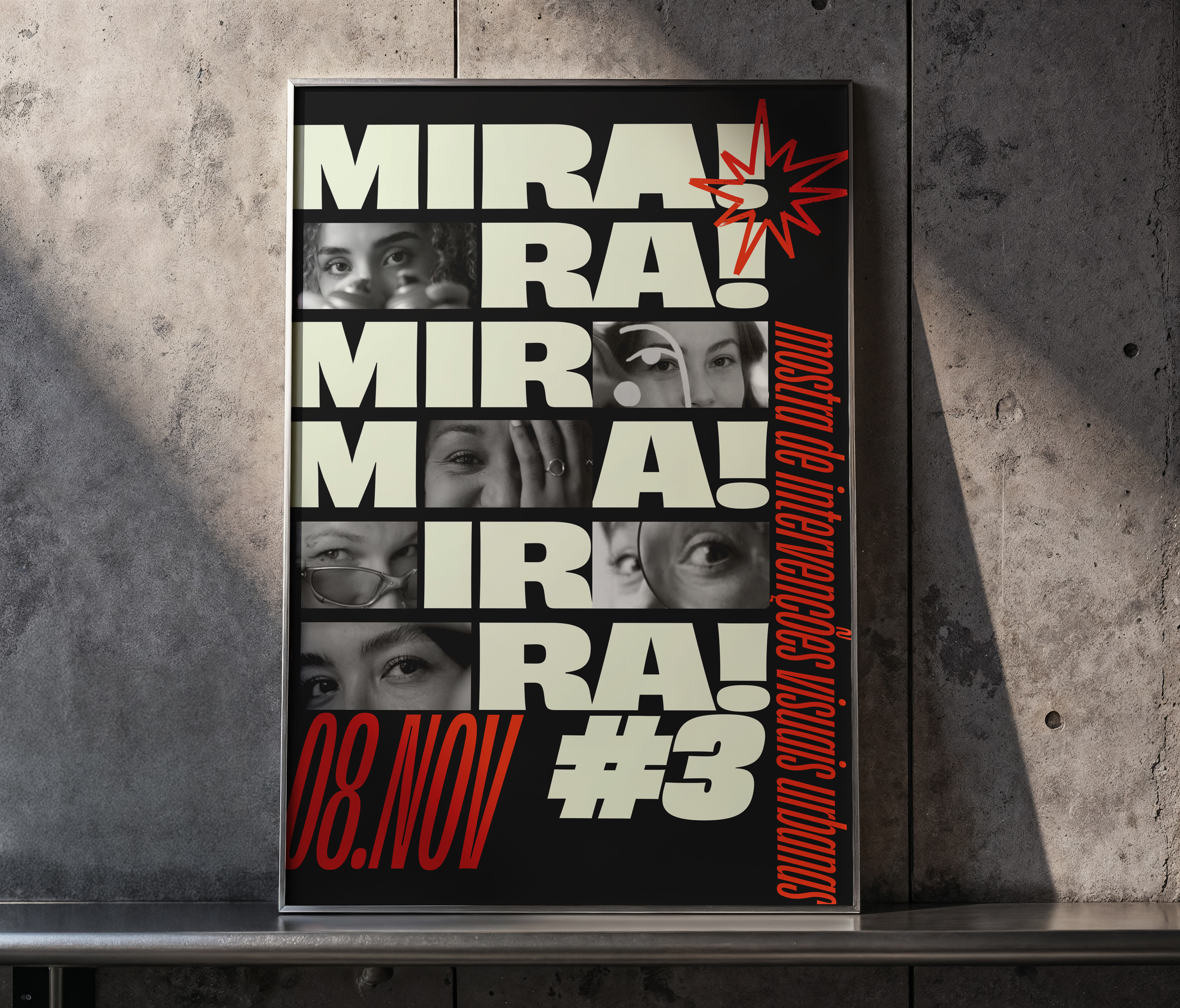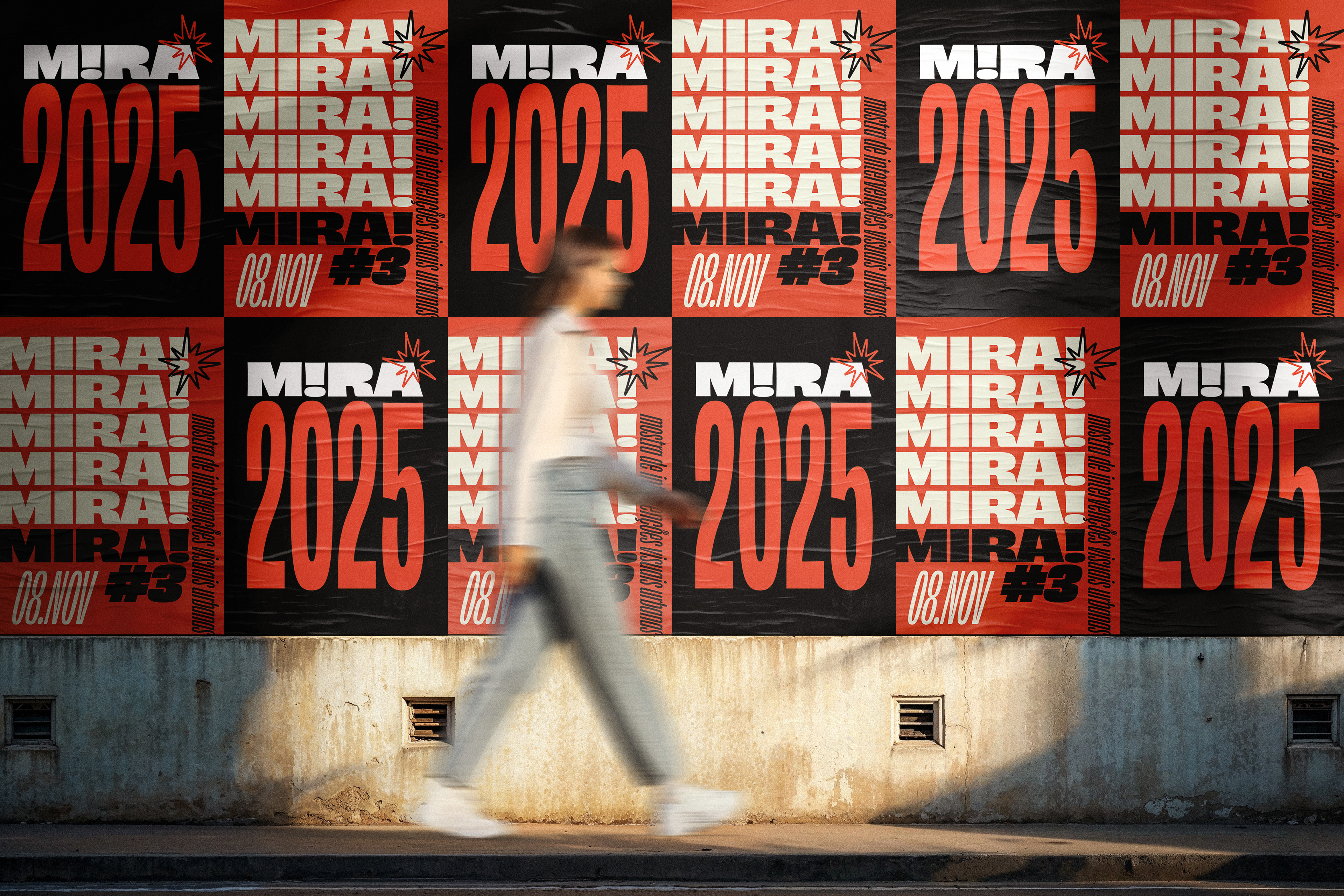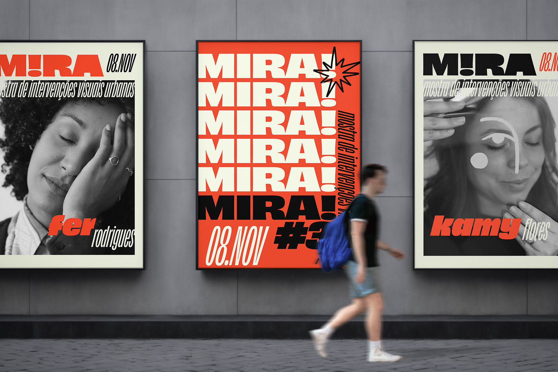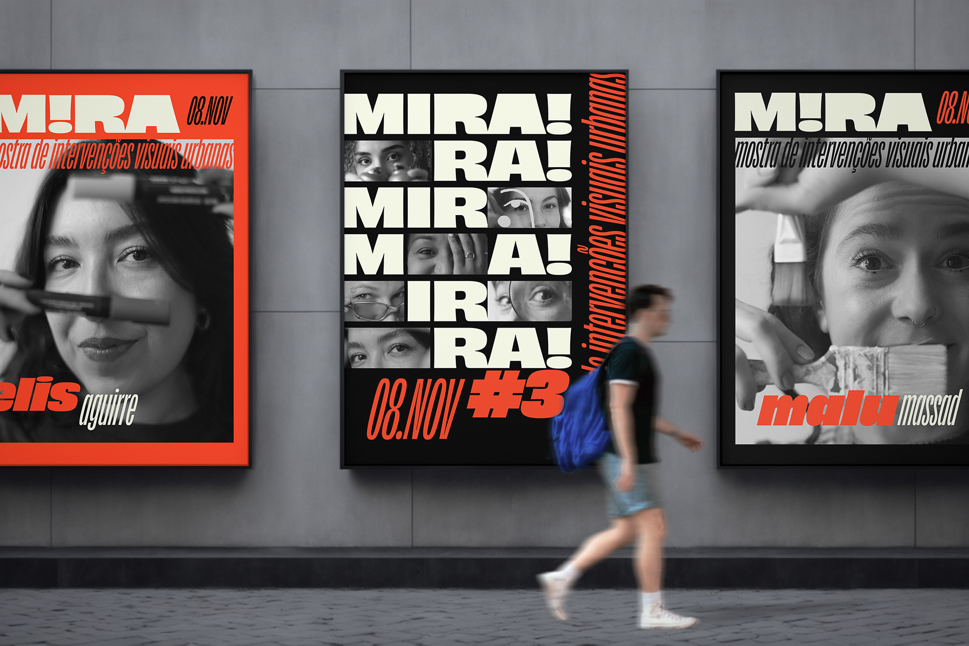Identidade visual para o projeto MIRA MULHERES – Mostra de Intervenções Visuais Urbanas que aconteceu em novembro de 2025 junto a feira Mamute em Curitiba. Foram selecionadas 6 artistas para a pintura de telas ao vivo durante o evento.