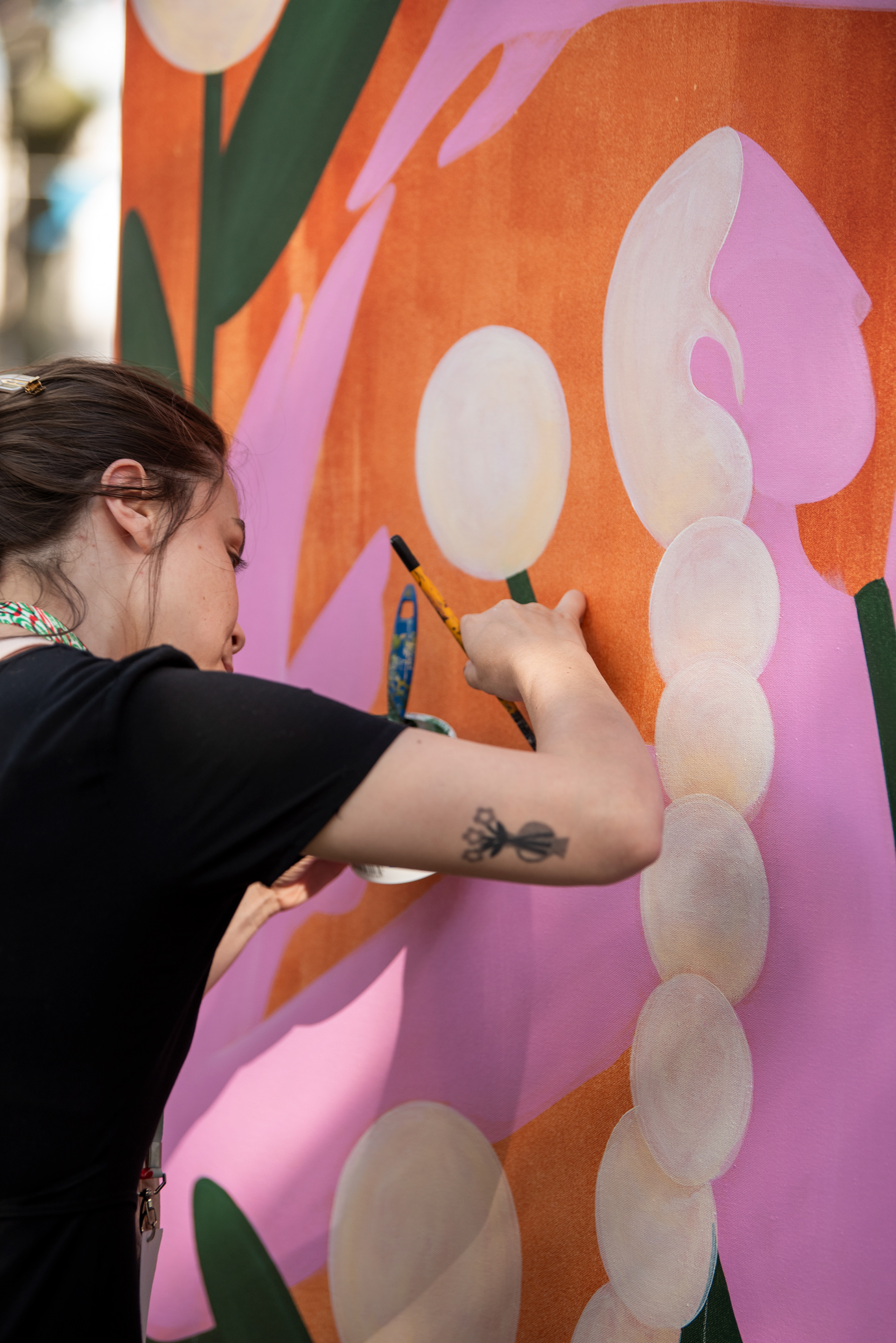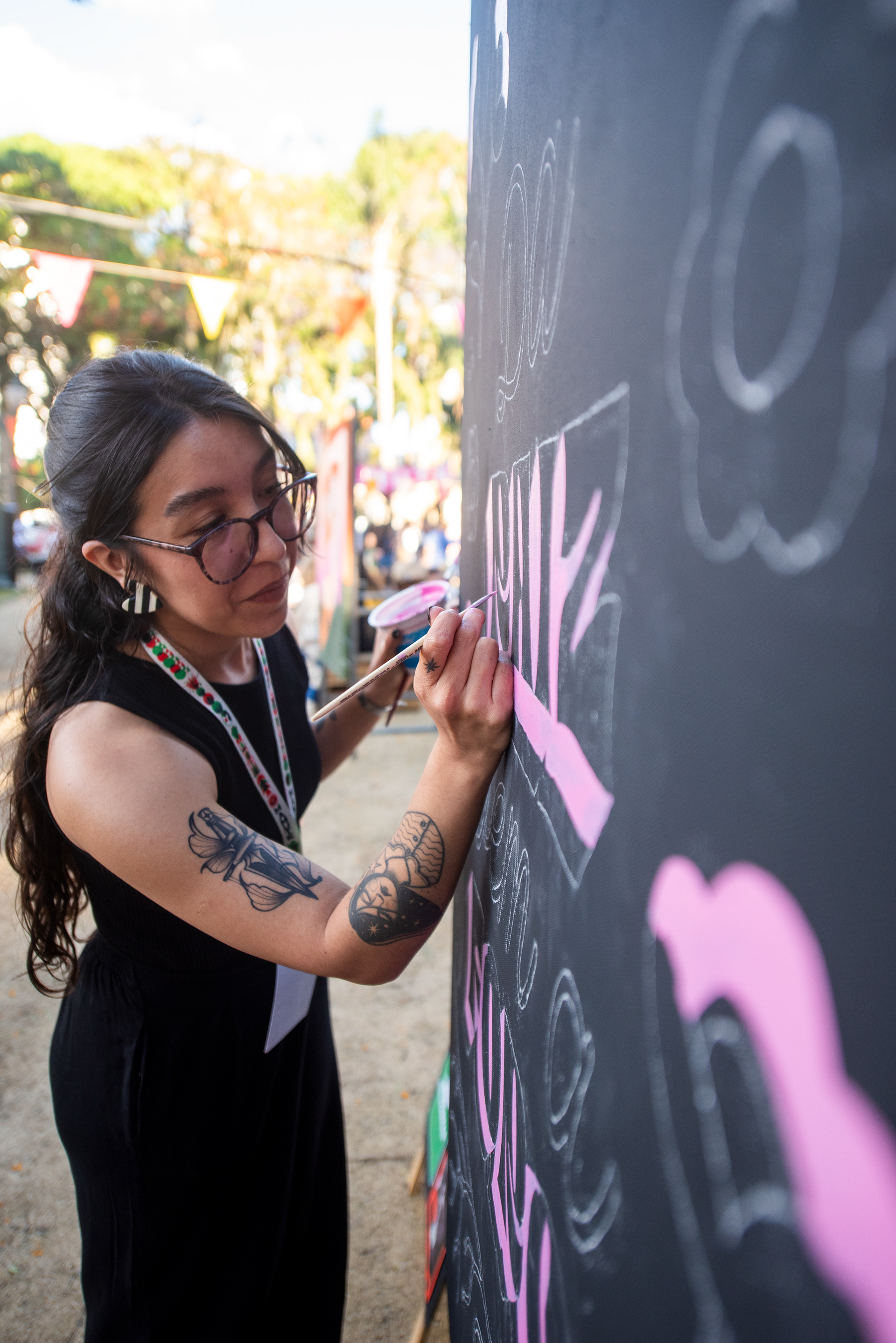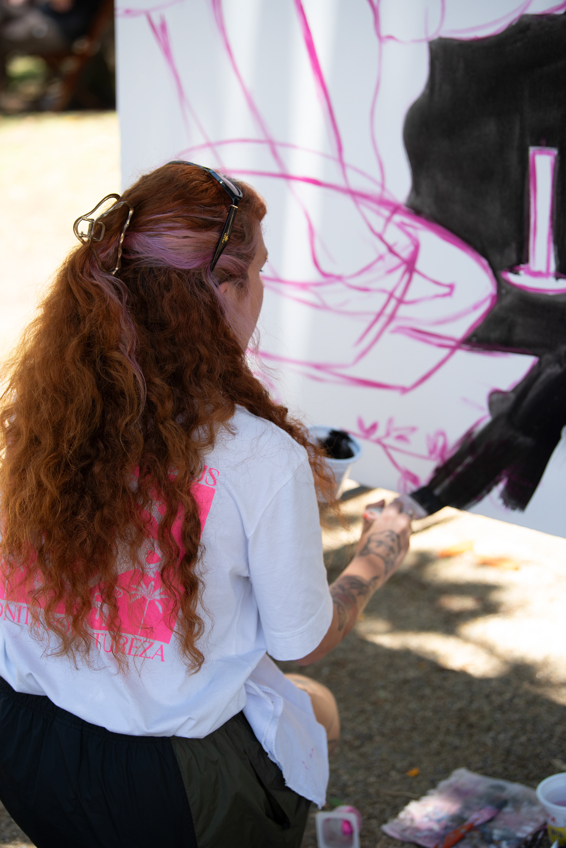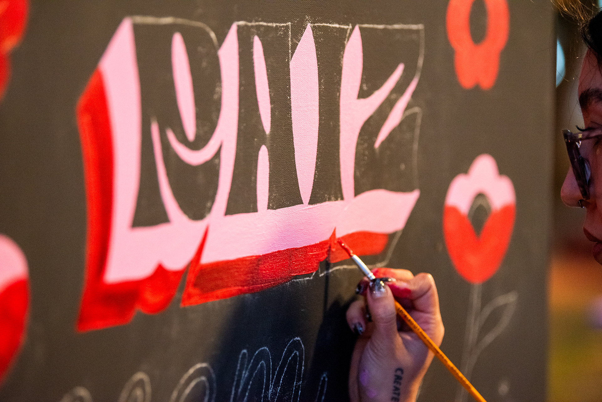 Fotos das artistas e da ação de livepainting por Maya